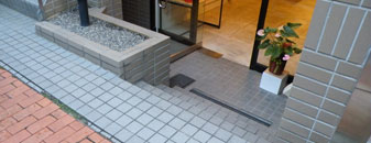 道路と建築物との間に距離を設けるのと同時に、建物の1階部分はできるだけ開口部を多くとるようになっています。これは、交差点で非常にいい効果が出ていました。通常、このような路地の交差点は非常に見通しが悪く、危ないという点がありましたが、開口部を設けることで交差点にゆとりができ、より安全に曲がることができるようになっていました。